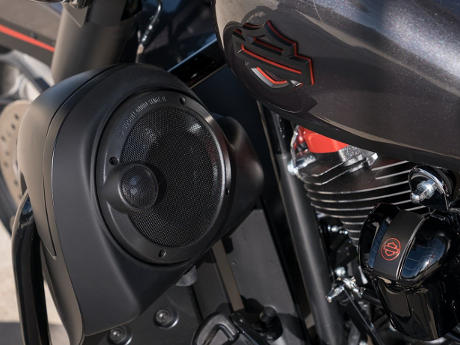 Zukunftsweisendes Audiosystem mit drei separaten Verstärkern mit 75 Watt pro Kanal, sechs Bi-Amp-Lautsprecher mit 900 Watt für glasklaren Sound und Lautsprecher in den Beinschilden, die Dich in vollen BOOM!™ Klang eintauchen lassen.