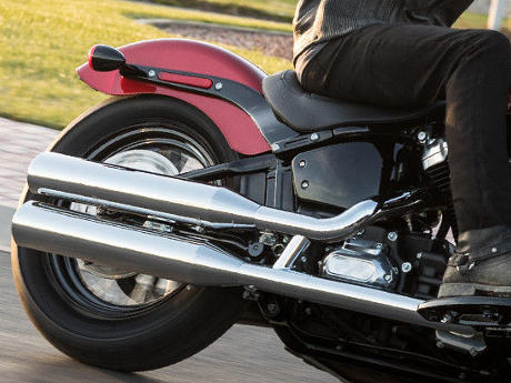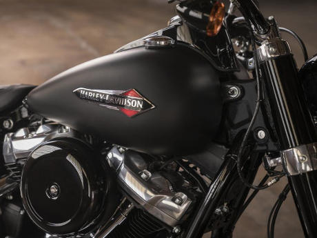Als V2 mit einem kraftvoll ausladendem Zylinderwinkel von 45 Grad und einem schlank gehaltenen Kurbelgehäuse sowie einer untenliegenden Nockenwelle behält der Milwaukee-Eight trotz seiner zahlreichen modernen Features die klassische Bauform der Harley-Davidson Motoren bei. Der V2 ist starr mit dem Softail Rahmen verbunden. Die Montagepunkte wurden neu definiert, um den Motor möglichst kompakt in den Rahmen zu integrieren und die Chassissteifigkeit zu erhöhen. Dank seiner Ausgleichswellen werden die Vibrationen des Triebwerks auf das Maß reduziert, das Harley-Davidson Fahrer schätzen. Und weil er ausgesprochen leise läuft, kommt sein typischer Harley-Davidson Sound umso besser zur Geltung. Nicht ganz zuletzt zählt auch ein besserer Durchzug im fünften Gang zu den Vorzügen.
