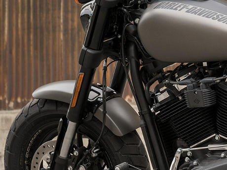Die neue SDBV-Frontfederung bietet die Racing-Performance einer Cartridge-Gabel bei reduziertem Gewicht und linearen Dämpfungseigenschaften. Die Gabel verfügt über die „Dual Bending Valve“-Technologie, die Harley-Davidson 2017 erstmals bei Touring-Modellen zum Einsatz brachte. Die Konstruktion ist ebenso leistungsfähig wie eine herkömmliche Cartridge-Gabel, fällt jedoch leichter aus.