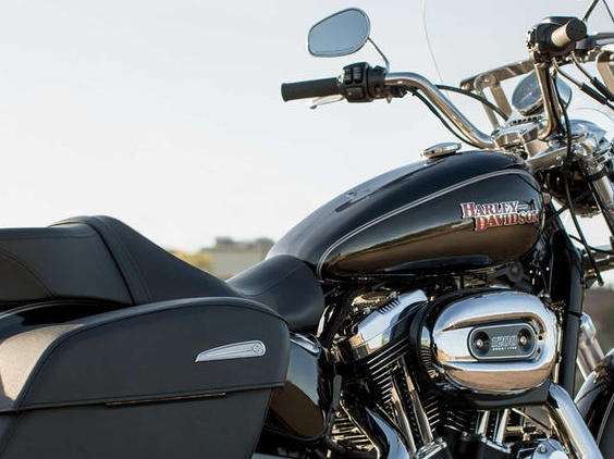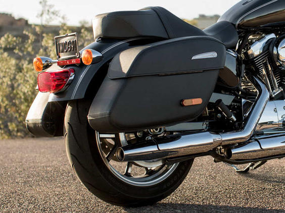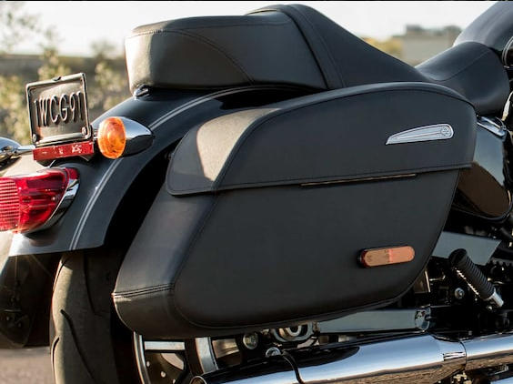 Die SuperLow 1200T bietet zwei schlanke, abschließbare Koffer. Dank einer Andockvorrichtung lassen sich ganz einfach zusätzlich Custom-Gepäckträger und Sissy Bar anbringen. Nirgends steht, dass ein Bike nicht gleichzeitig stark aussehen und reichlich Stauraum für lange Strecken bieten kann.