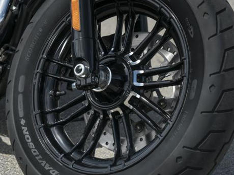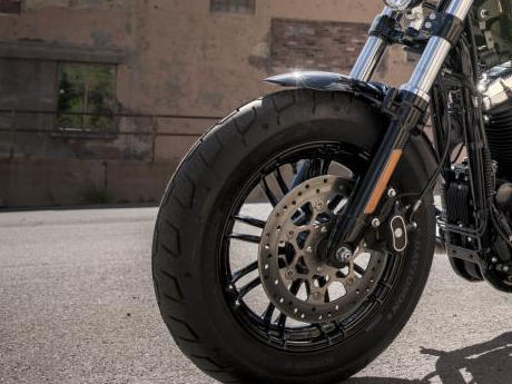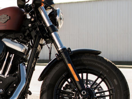 Die bullige Front mit dem breiten Vorderradreifen verleiht der Forty-Eight eine Erscheinung, die an die Bobber-Kultur der 1950er Jahre erinnert - ein Custom-Look mit dominanter Präsenz. Die bullige Frontpartie mit dem großen, breiten MT90-Reifen lässt Dich aber auch bei gutem Handling sanft über die Straßen gleiten.