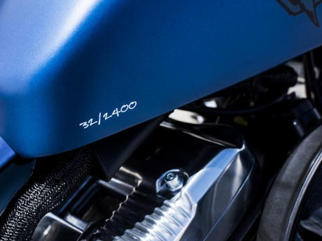 Blau wie nie in Legend Blue Denim mit spektakulären Tank-Grahics imTattoo-Stil und handgearbeiter Editonsnummer auf dem Tank.
