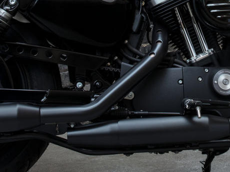 Minimalistisch, pur und düster: Die Iron 883 ist eine Maschine, die nahezu ohne Chrom auskommt – ein Bike, das seinen Minimalismus offensiv zur Schau trägt: