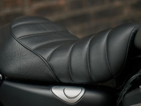 Der niedrige Solositz, der modernen Komfort mit einem authentischen „Tuck and Roll“-Design kombiniert, das von den Anfängen des Bobber-Stils inspiriert wurde, sorgt unmittelbar für ein gutes Gefühl.