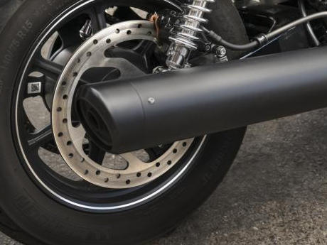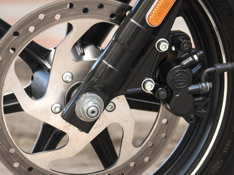 Die Einzel-Scheibenbremsen der Street 750 mit Doppelkolben-Bremssätteln bieten kraftvolle Verzögerung.
