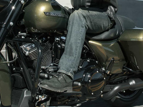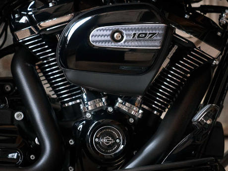 Ein leistungsstarker und geschmeidig laufender Big Twin Motor mit spontanem Ansprechverhalten und einem Grollen, das der Seele einfach gut tut.