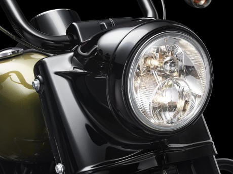 Das schwarze Scheinwerfergehäuse mit passendem Lampenring ist groß und imposant, mit einem der Dunkelheit trotzenden Scheinwerfer, der dafür sorgt, dass Sie mühelos alles sehen können.