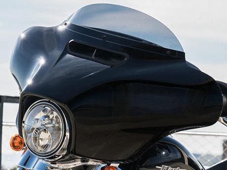Die Batwing-Verkleidung hat eine legendäre Form in einem klaren, progressiven Stil, der gleichmäßigeren Luftstrom liefert und die Turbulenzen hinter der Verkleidung minimiert. Das leistet zum großen Teil der Druckausgleich durch den Strömungskanal an der Front. Er lässt sich mit einem Tastendruck öffnen und schließen. Der Fahrkomfort ist spürbar gewachsen.