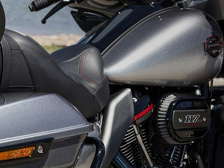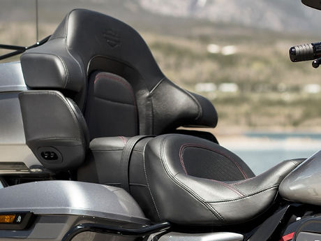Die bestickte H-D Bar & Shield Soziusrückenlehne mit einstellbarer Lordosenstütze bietet ein Höchstmaß an Bequemlichkeit, und bei kühlen Außentemperaturen aktivierst Du einfach die Sitzheizung.