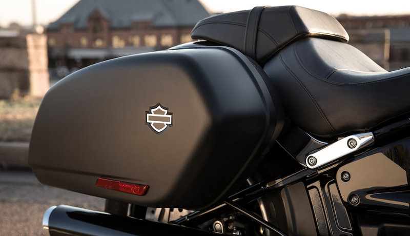 Abschließbare Seitenkoffer serienmäßig. Dank der leicht abnehmbaren Koffer lässt sich die Sport Glide in Minutenschnelle vom Custom Touring Bike in einen minimalistischen, stilvollen Cruiser verwandeln.