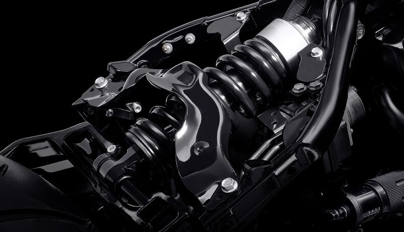 Das Federbein zeichnet sich dank eines Emulsionsstoßdämpfers und einer optimierte Anlenkung am Rahmen durch hervorragende Dämpfungseigenschaften und einen längeren Federweg aus.