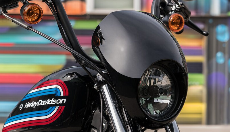 Die schlanke Scheinwerferverkleidung ist vom West-Coast Styling-beeinflusst und unterstreicht den draufgängerischen Charakter des Bikes. Und wenn Du noch dahinter sitzst, kann gar nichts mehr schiefgehen.