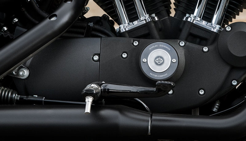 Harley-Davidson hat die Maschine in Farben lackiert, die nur wenig Pflege erfordern. Dieser raue Look passt in die finstersten Straßenschluchten, absolut robuste Machart für robusten Einsatz. Den rauen Look vervollständigt die typische Iron-Tankgrafik.
