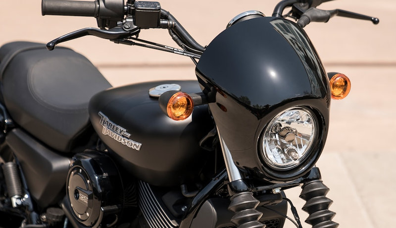 Die Harley-Davidson Street 750 kommt entschlossen düster daher, denn schwarz ist in jeder Sprache cool. Schwarz die 2-in1-Auspuffanlage und die Räder aus Leichtmetallguss, eine schwarze Frontpartie mit von Café Racer inspiriertem Drehzahlbildschirm und einem Medaillon aus Stahl auf dem Tank.