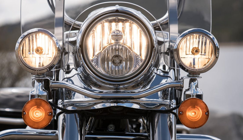 Groß und mächtig erinnert dieser Scheinwerfer an die Big Twins der 60er Jahre. Groß und imposant, aus modernsten Werkstoffen hergestellt und mit Technologien für ein weit reichendes Fernlicht und ein breites Abblendlicht.