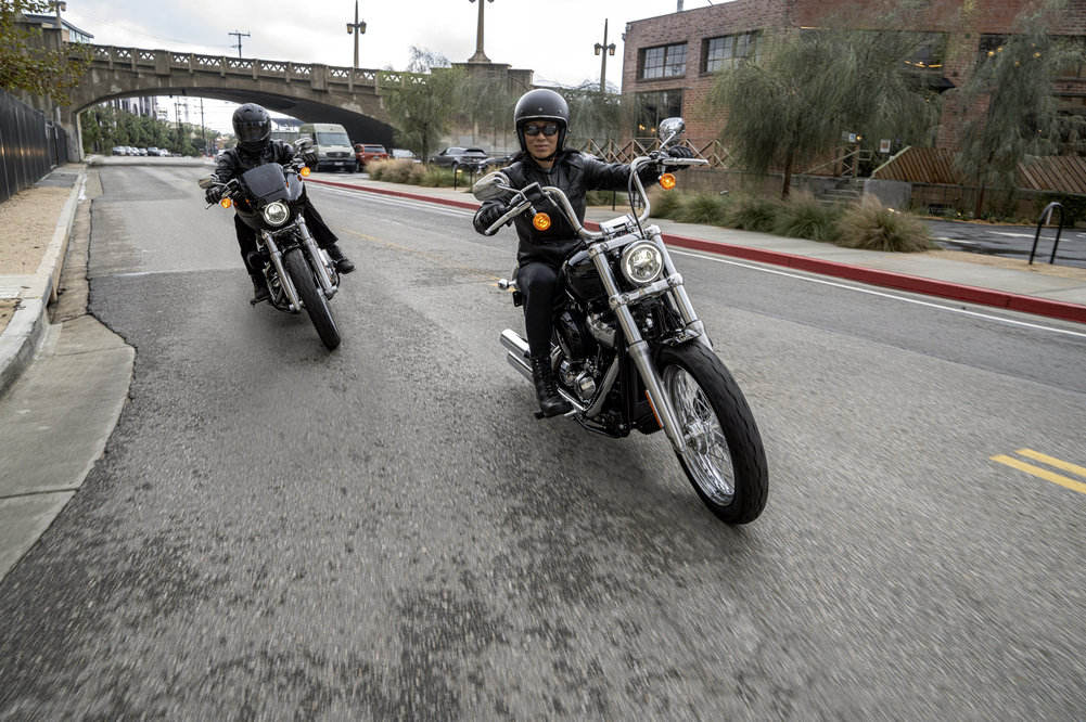 Die Softail Standard kommt mit allen Zutaten daher, die einen authentischen Harley-Davidson-Chopper ausmachen: hoher Lenker, tiefer Sitz, schlanke Silhouette, Drahtspeichenräder. Dazu gehören die dynamischen Reserven des stabilen Softail-Fahrwerks und Druck aus dem mächtigen Milwaukee-Eight-V-Twin. In klassischem Vivid Black lackiert und mit verchromten Bauteilen sowie polierten Oberflächen verfeinert, bildet sie die Quintessenz eines auf das Wesentliche reduzierten Factory-Custombikes.
