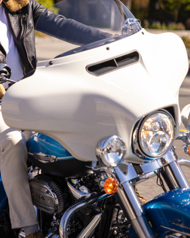 Die klassische Batwing-Verkleidung verfügt über eine hohe, klare Windschutzscheibe und den Splitstream Vent, einen geschickt platzierten Lufteinlass, der Turbulenzen im Kopfbereich reduziert.