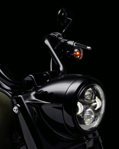 Das schwarze Scheinwerfergehäuse mit passendem Lampenring ist groß und imposant, mit einem der Dunkelheit trotzenden Scheinwerfer, der dafür sorgt, dass Du mühelos alles sehen kannst.