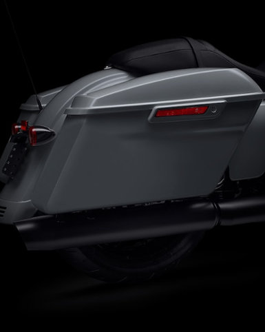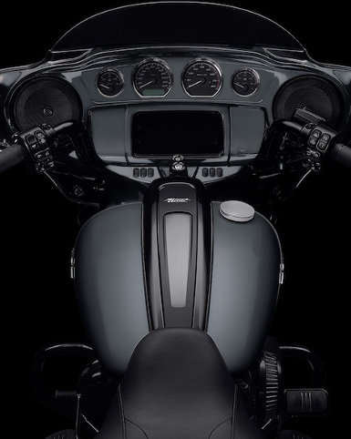 Der 11 Zoll tiefer gelegte Motorschutz ist weiter nach vorn gerichtet, um viel Platz für Bremse, Schaltwippe und die Beine zu bieten. Zusammen mit der Mittelkonsole mit niedrigerem Profil betont er die gestreckte Silhouette der Street Glide Special.