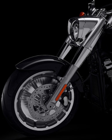 In der modernen Interpretation der klassischen Harley-Davidson, für die Fat Boy typischen, Scheinwerferverkleidung leuchtet weißes LED-Licht einen präzise definierten Bereich der Strasse optimal aus.