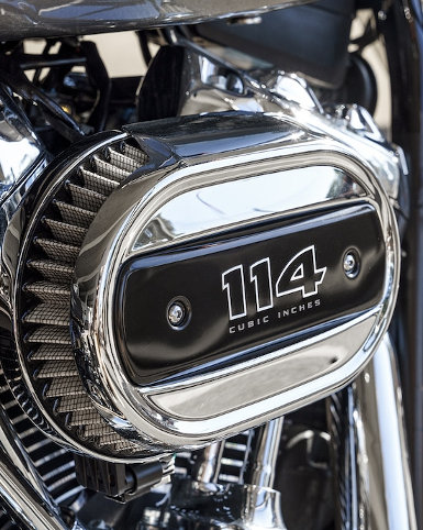 Der clean gehaltene Kraftstofftank mit glatter Oberseite bringt den großen, kraftvollen Milwaukee-Eight-Motor noch besser zur Geltung.