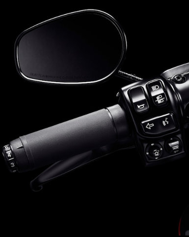 Die Road Glide Limited ist in Chrome Finish (Auspuff, Motor...) oder optional mit düsterem, geschwärztem Finish als Custom-Detail ab Werk für einen markanten, unverkennbaren Look zu haben.