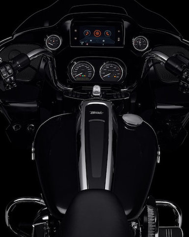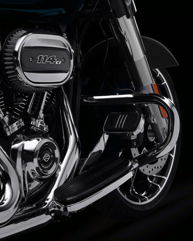 Der 11 Zoll tief gelegte Motorschutz ist weiter nach vorn gerichtet, um viel Platz für Bremse, Schaltwippe und die Beine zu bieten. Zusammen mit der Mittelkonsole mit niedrigerem Profil betont er die gestreckte Silhouette der Road Glide Special.