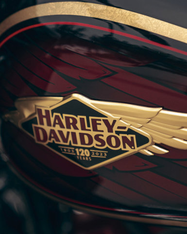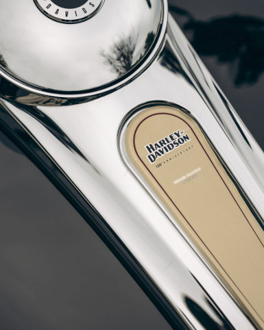 Zur Feier des 120. Jubiläums befindet sich am Konsoleneinsatz jedes Motorrads eine gelaserte Seriennummer.