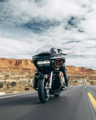 Das fortschrittlichste Scheinwerfersystem, das je für eine Harley-Davidson entwickelt wurde. Mit einem charakteristischen LED-Licht-Außenring, der als Tagfahrlicht dient, und mit zusätzlichen LED-Leuchten, die abhängig von der Schräglage des Motorrads aktiviert werden, um Bereiche der Straße auszuleuchten, die von herkömmlichen LED-Scheinwerfern unbeleuchtet bleiben.