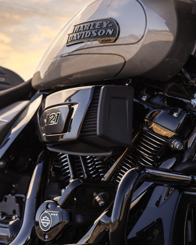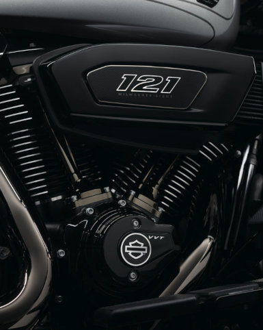 Der neue Milwaukee-Eight VVT 121 kommt exklusiv in den neuen Modellen CVO Street Glide und CVO Road Glide zum Einsatz. In puncto Hubraum und Performance setzt der 121 cui (1.977 cm3) große 45-Grad-V-Twin neue Maßstäbe bei Harley-Davidson. Verglichen mit dem Milwaukee-Eight 117 der Vorgängermodelle bietet er in der europäischen Homologation voraussichtlich ein rund 8 Prozent höheres Drehmoment und eine um circa 12 Prozent gesteigerte Leistung. Darüber hinaus leitet er weniger Abwärme zum Fahrer hin ab und punktet mit einem attraktiven Sound. Zu den neuen Features des Milwaukee-Eight VVT 121 gehören optimierte, flüssigkeitsgekühlte Zylinderköpfe mit einem neuen Kühlsystem, die variable Ventilsteuerung (VVT) und ein neuer Ansaugtrakt. Eine Ausgleichswelle reduziert seine Vibrationen.