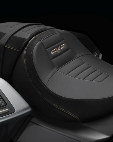 Der Frontfender ist schlanker gehalten als bisher, um die visuelle Masse zu reduzieren und den Blick stärker auf das charakteristische Rad, die Upside-down-Gabel und die Brembo Radialbremssättel zu lenken. Der neue 6-Gallonen-Kraftstofftank (22,7 l) verfügt über zwei Kanten im Schulterbereich. Die Form der Seitendeckel entspricht der Ausprägung der Seitenkoffer und unterstreicht die optische Dynamik der Seitenlinie. Die Koffer erscheinen kompakter, bieten aber mehr Platz für das Gepäck und die Lautsprecher. Inr Kombination mit schwarzen, kontrastgefrästen Leichtmetallgussfelgen und Drahtspeichen setzen die neuen Combo Cast Laced Wheels - 19 Zoll vorn, 18 Zoll hinten - ein Statement für Individualität und ermöglichen den Einsatz des Reifendruckkontrollsystems TPMS.