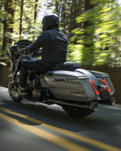 Die CVO Street Glide des Modelljahrs 2023 schlägt ein neues Kapitel im Harley-Davidson Motorraddesign auf. Der faszinierende neue Look sorgt für eine dynamische Linienführung der Schlüsselkomponenten des Motorrads: Verkleidung, Tank, Seitendeckel und Koffer. Das Ergebnis ist eine optische Veränderung, die eindeutig auf der vertrauten Formgebung früherer Harley-Davidson Grand American Touring Motorräder basiert, diese jedoch deutlich weiterentwickelt.