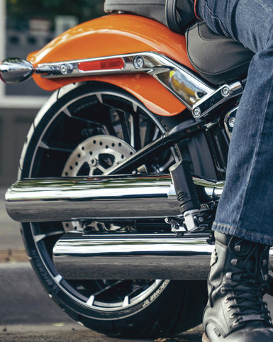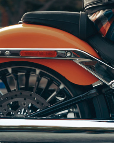 Für alle, für die Spaß zu zweit doppelter Spaß ist, ist die Breakout mit einer ergonomisch gestalteten, komfortablen Doppelsitzbank ausgestattet.Der neue, 18,9 Liter fassende Kraftstofftank mit einer flachen Chromkonsole vergrößert die Reichweite und macht die Silhouette des Bikes noch attraktiver.