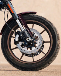 Das größere hintere Monofederbein hebt das Heck des Low Rider S für verbesserten Fahrkomfort um 1,3 Grad mehr Neigungswinkel an. Das erhöht die Bodenfreiheit und auch das Selbstvertrauen des Fahrers bei aggressiven Kurvenfahrten.