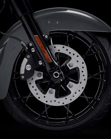 Schwarz glänzende 48-cm-Vorderräder und 46-cm-Hinterräder aus Aluminium sorgen für ein cooles Erscheinungsbild und viel Attitüde.