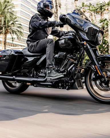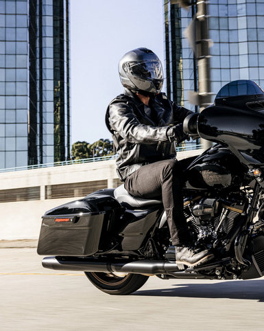 Koffer in Standardlänge ersetzen die verlängerten Taschen der Street Glide Special und verstärken das schlanke, leistungsorientierte Styling.