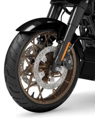 Bronzefarbene 48-cm-Vorderräder und 46-cm-Hinterräder aus Aluminium sorgen für ein cooles Erscheinungsbild und viel Attitüde.