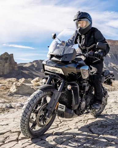Die Leichtmetall-Gussspeichenräder (19 Zoll vorn und 17 Zoll hinten) sind ebenso stabil wie leichtgewichtig und eignen sich bestens für die Fahrt auf Asphalt und auf unbefestigtem Grund. Um den Anforderungen von Adventure-Touren gerecht zu werden, hat Harley Davidson in Kooperation mit Michelin den Scorcher-Adventure-Reifen für die Pan-America-Modelle entwickelt. Mit einem aggressiven Stollenprofil ist der Michelin Anakee Wild, der optional über Harley-Davidson Genuine Motor Parts & Accessories angeboten wird, die richtige Wahl für Fahrer, die einen härteren Offroad-Style bevorzugen und maximale Traktion im Gelände suchen.