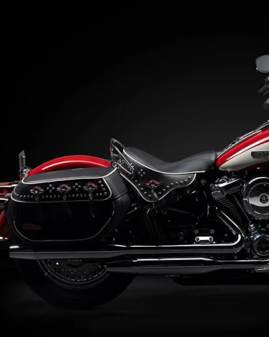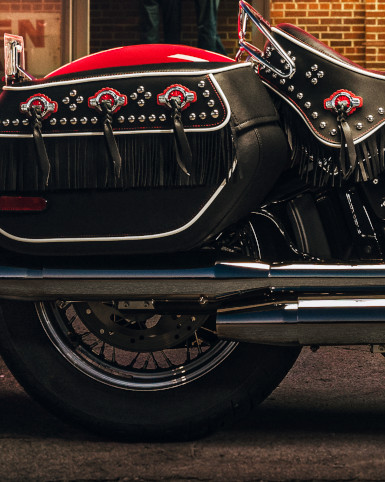 Nieten, Lederfransen, Conchos und Paspeln mit Kontrastnähten schmücken auch die Satteltaschen aus Leder und Vinyl. Ihre Oberflächen sind wasserabweisend und sie verfügen über Sicherheitsschlösser sowie stabile Kofferschalen, damit sie auch nach Jahren der Nutzung ihre Form behalten.