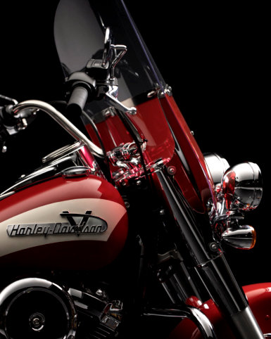 Das abnehmbare, zweifarbige Windshield der Hydra-Glide Revival ist zeitgenössisch korrekt und farblich passend im unteren Teil in Redline Red eingefärbt.