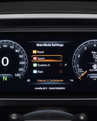 Fahrmodi sorgen für mehr Kontrolle und Vertrauen unter verschiedenen Einsatzbedingungen, indem sie die Fahrdynamik der Maschine und die Intensität des Eingriffs der Fahrerassistenzsysteme elektronisch regeln. Jeder Fahrmodus (Road, Sport, Rain, Custom) bietet eine einzigartige Kombination der Beeinflussung der Kraftentfaltung, der Motorbremse, des kurvenoptimierten Antiblockiersystems (C-ABS) und der kurvenoptimierten Antriebsschlupfregelung (C-TCS).