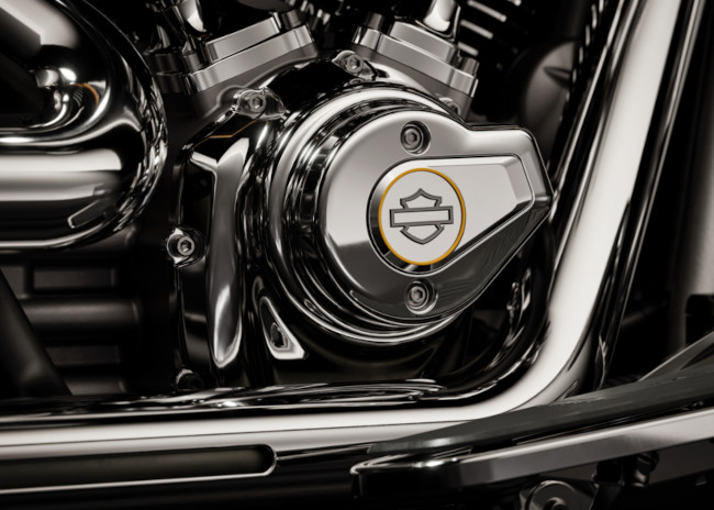 Der leistungsgesteigerte Milwaukee-Eight 117 V-Twin, der einen runden Luftfilter im klassischen Stil trägt, entwickelt sattes Drehmoment für schnelle Starts und müheloses Cruisen auf der Autobahn.