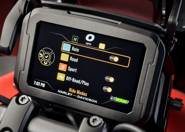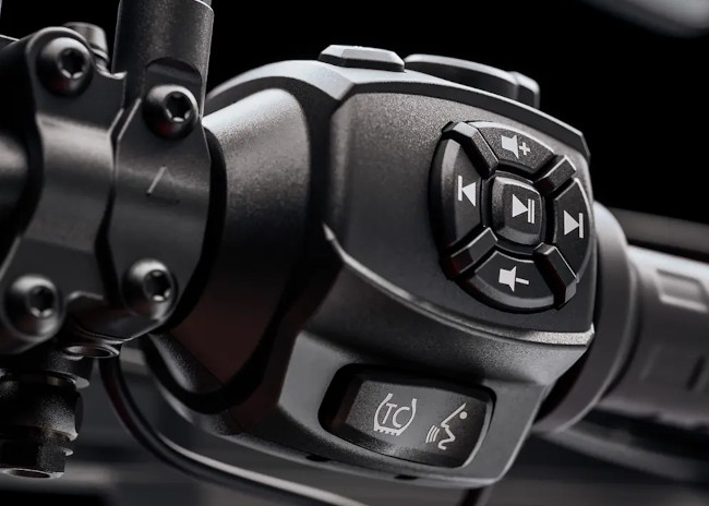 Dieser Motor kann Schrittgeschwindigkeit, volle Lotte und alles dazwischen. Der Revolution Max ist ein flüssigkeits­gekühlter Motor mit mehr als 152 PS, reichlich Drehmoment und einem extrem breiten nutzbaren Drehzahlbereich, der das Leben leicht macht. Zwei obenliegende Nockenwellen je Zylinder (DOHC) bieten satte Spitzenleistung, die variable Ventilsteuerung (VVT) sorgt für viel Drehmoment und ein breites nutzbares Drehzahlband. Dank der für den Straßen- und Offroad-Einsatz einstellbaren Antriebsschlupfregelung kannst Du immer sicher sein, dass Du die Kraft auf den Boden bringst, egal wie dieser Boden aussieht.
