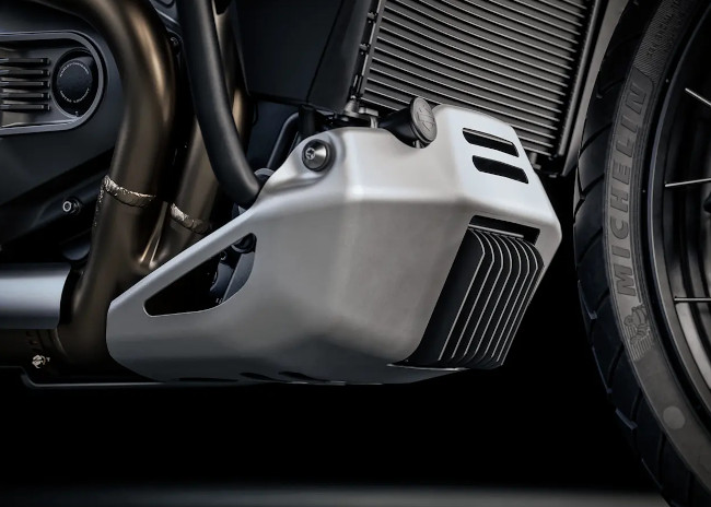 Der Motor dient als mittragendes Fahrwerk­selement und macht einen herkömmlichen Rahmen überflüssig. Das ist Performance, die man wirklich fühlen kann – mit niedrigem Schwerpunkt und verwindungssteifem Fahrwerk.