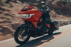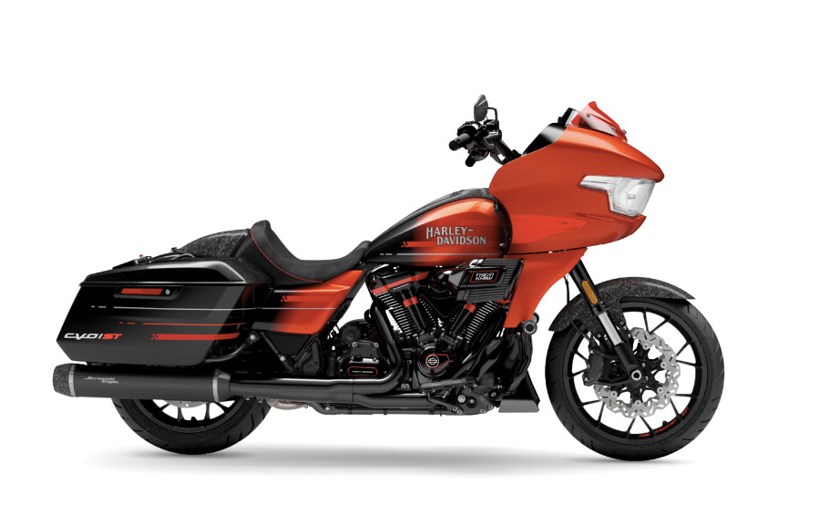 Die CVO Road Glide ST ist in drei exklusiven Lackierungen erhältlich – Citrus Heat Re-Entry, Inferno Gray und Electric Coast. Jede dieser Farben betont den renninspirierten Auftritt dieses Motorrads. Citrus Heat Re-Entry ist nur für dieses Modell erhältlich und zeigt eine auffällige Screamin’ Eagle Grafik an Verkleidung und Tank, während sich Inferno Gray und Electric Coast durch den Harley-Davidson Schriftzug und ein übergroßes Bar Shield Logo auszeichnen. Dieses Motorrad sieht so kraftvoll aus, wie es klingt.