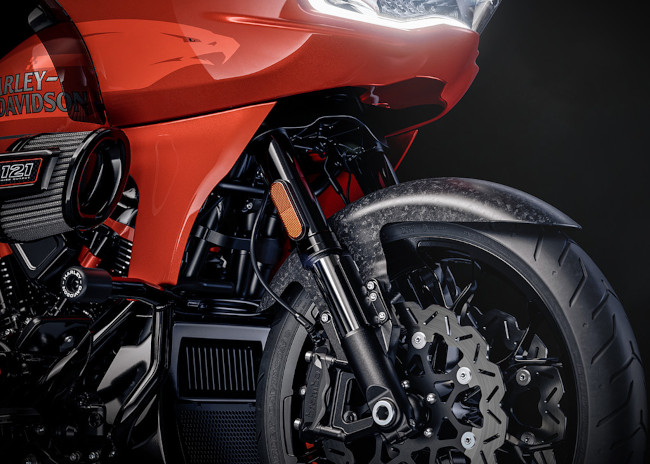 Die charakteristische Sharknose-Verkleidung ist sowohl wirksamer Wind- und Wetterschutz als auch ein Stilelement. Sie besticht durch herausragende aerodynamische Performance und verstärkt den eindrucksvollen Auftritt der CVO Road Glide ST. Das rot getönte Windschild passt zu den Akzenten in Performance Red und erzielt ein konsistentes, renninspiriertes Aussehen, das Dir den Eindruck vermittelt, Du bist der König der Bagger-Fahrer. Coole Sache, oder?