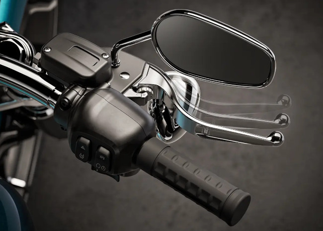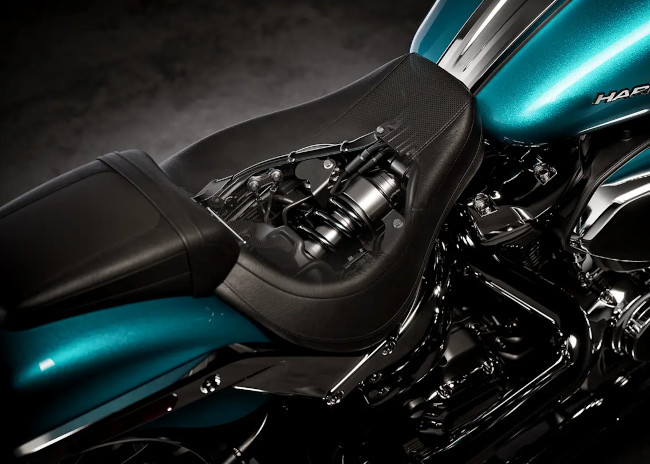 Die hydraulische Einstellung für die Federvorspannung des Monofederbeins ist unter dem Sitz leicht zugänglich und ermöglicht eine schnelle Anpassung an die jeweilige Zuladung, um optimales Fahrverhalten zu gewährleisten. Das bringt's für dynamische Kurvenfahrten, zügige Beschleunigung und schnelles Bremsen, während der Hardtail-Look beibehalten wird.