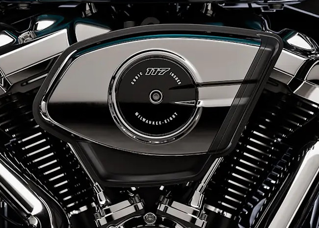 Milwaukee-Eight 117 Custom Motor mit sattem Hubraum