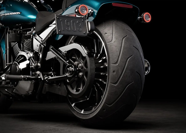 Der massive 240-mm-Hinterradreifen verleiht der Breakout einen soliden Look und vermittelt ein Gefühl von Unzerstörbarkeit.