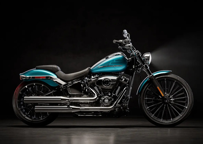 Die 2026er Breakout zieht schon vor dem Start dank zweier neuer werksseitiger Finishes alle Blicke auf sich: Blood Orange und Teal Thunder. Sie ergänzen die Farben Vivid Black, Dark Billiard Grey und Iron Horse Metallic, die alle auffällig genug sind, um dem Namen Breakout alle Ehre zu machen.